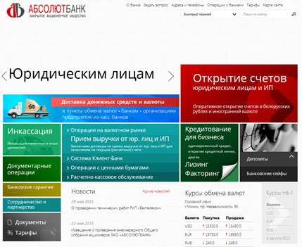 Создание информационного сайта для белорусского банка Абсолютбанк.Absolutbank.by сайт банка, разработан на Ruby On Rails, Refinery CMS, для хранения данных используется СУБД MySQL.Сайт содержит информацию о банковских услугах, финансовых новостях, курсе валют во всех офисах.