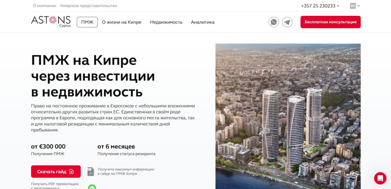 Astons — ведущая компания в области инвестиционной иммиграции и релокации, предлагающая индивидуальные решения для получения ВНЖ и гражданства в Европе, Тихоокеанском, Карибском регионах, на Ближнем Востоке и в США, а также – премиальную недвижимость в 11 странах мира.