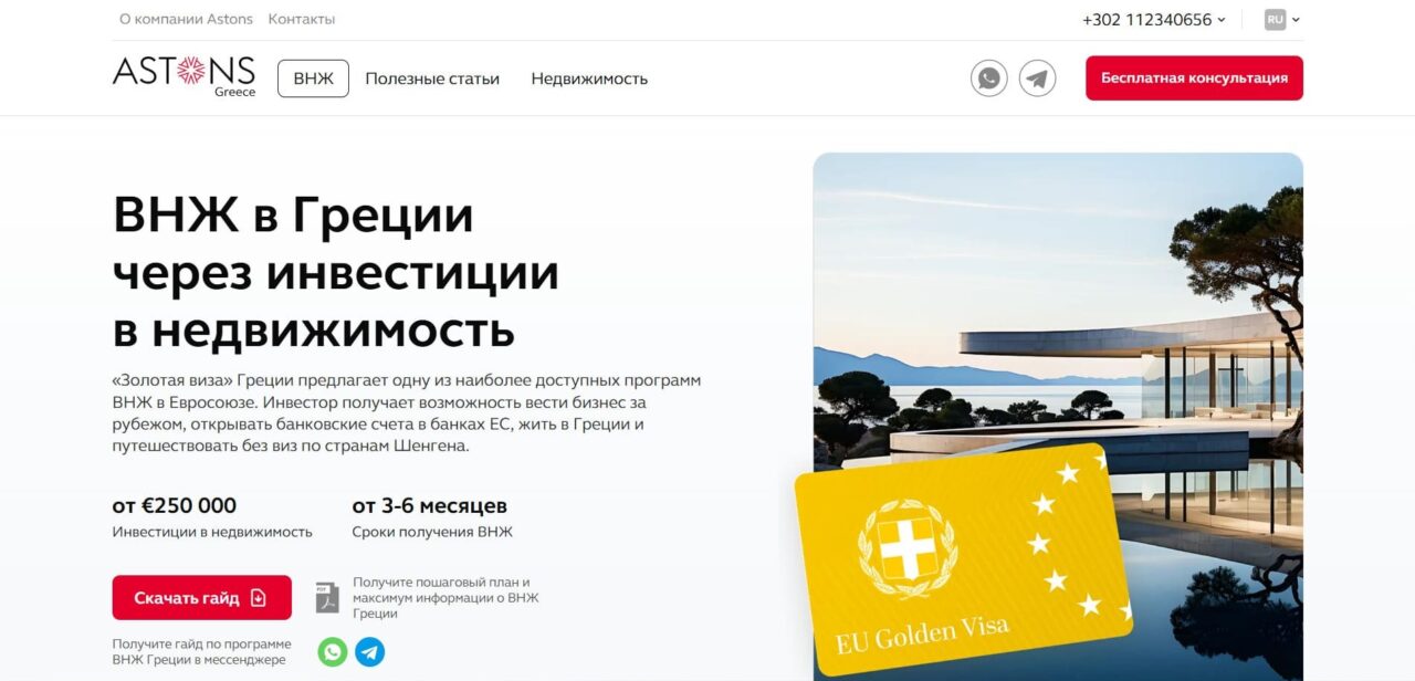 Создание веб-сайта для инвестиционной иммиграционной компании с международной лицензией, предлагающей решения по вопросам получения вида на жительство в Греции через инвестиции в недвижимость.