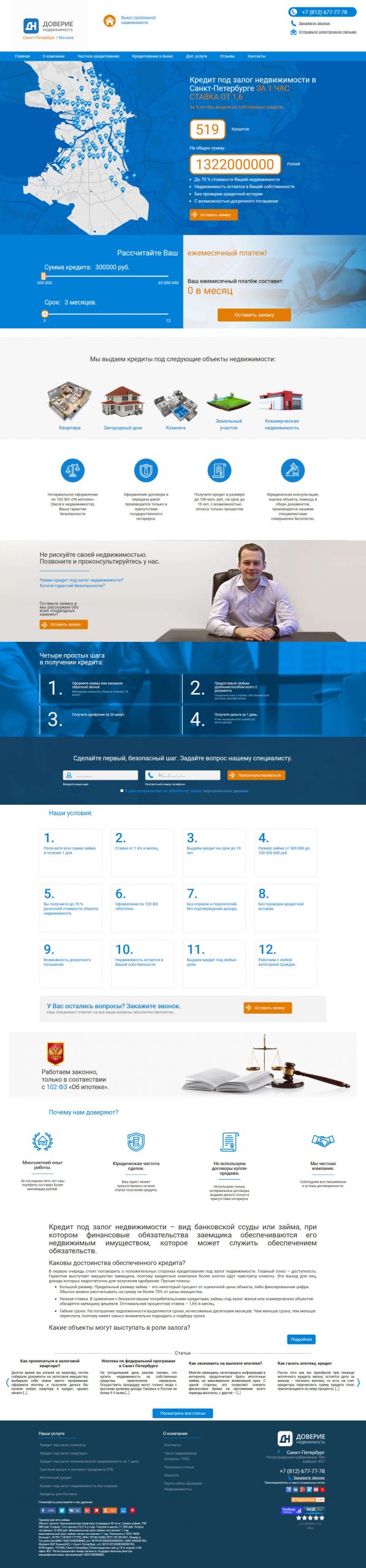 Сайт для компании «Доверие недвижимость» был разработан на основе CMS WordPress.