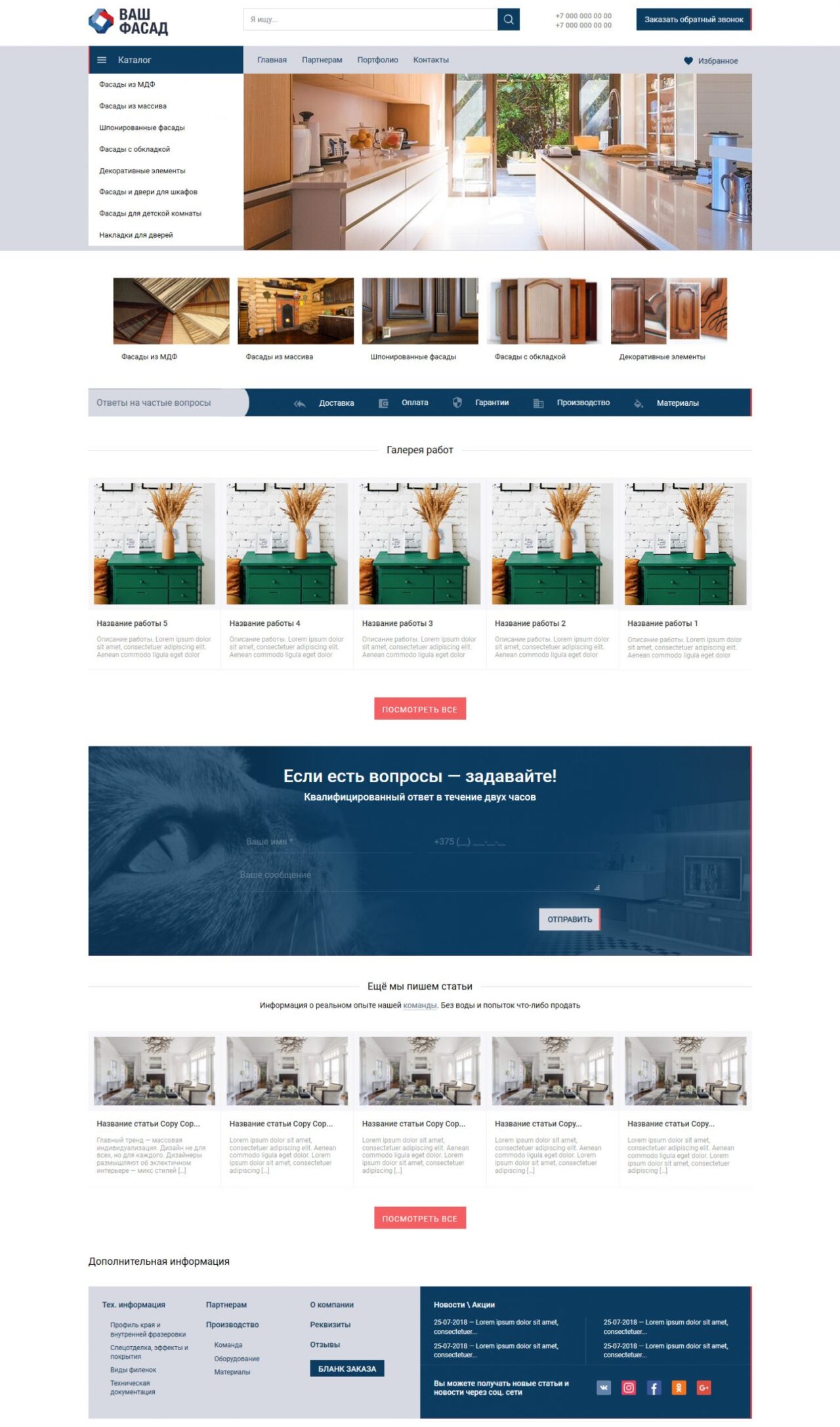 Сайт Фасады разработан на WordPress & Woocommerce. Дизайн был сверстан с использованием современных языков программирования, таких как html5, css3 & js.