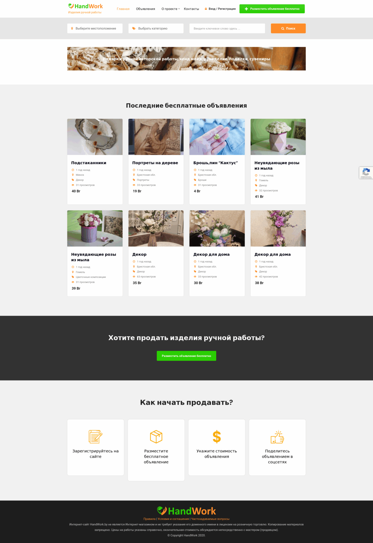 Сайт-объявлений HandWork.By был разработан на CMS WordPress.