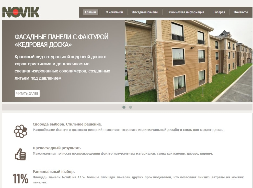 Создание сайта для Канадской компании Novik, которая производит фасадные панели